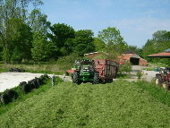 Bei den täglichen Arbeiten und sowie beim Silo fahren oder bei Heu und Stroh pressen - die Kinder dürfen gerne Platz auf dem Trecker nehmen und mitfahren. Der Spaß für jede Altergruppe. Bei schlechtem Wetter steht die große Strohhalle zum Bauen von Höhlen und Indoorspielen zur Verfügung. Da wir in absolut ruhiger Lage leben, haben Sie sehr viel Möglichkeiten in der Natur ausgiebige Spaziergänge zu unternehmen, Drachen steigen lassen auf unseren eigenen Wiesen, zu angeln oder einfach mal auf den Gartenmöbeln zu relaxen. Und wenn Sie mal nichts unternehmen möchten so steht Ihnen ein Gartenhaus mit Grill zur Verfügung. Lagerfeuer, Grill- und Funabende (z.B. ca. 70 cm Gyrospfanne) werden bei uns in und außerhalb der Grillhütte gefeiert.