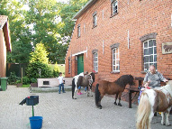 Dann können kleine und große Reitfreunde bürsten, striegeln und Satteln sowie Trensen. Egal ob groß oder klein, jeder lernt noch etwas dabei.